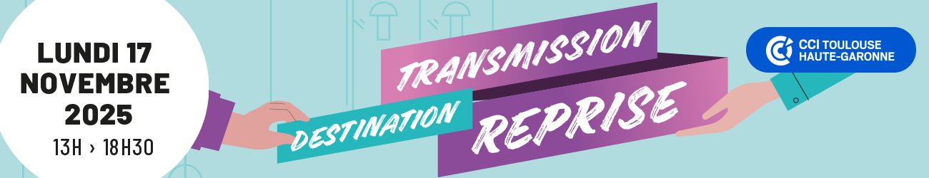 La Chambre de Commerce et d’Industrie (CCI) organise la 3ème édition de "Destination Transmission Reprise" le 17 novembre 2025 de 13h30 à 18h30 au Palais Consulaire, 2 Rue d'Alsace Lorraine, 31000 Toulouse.