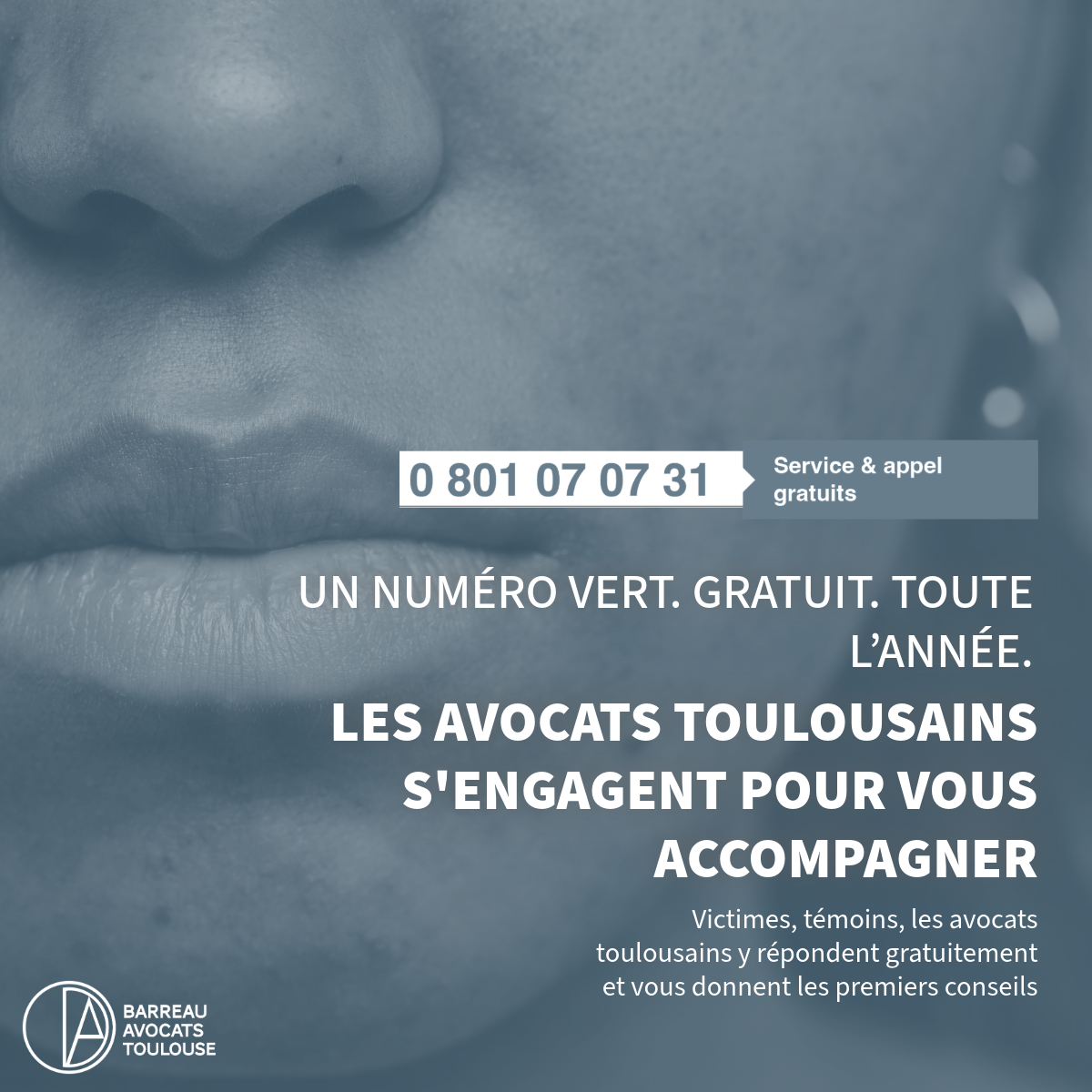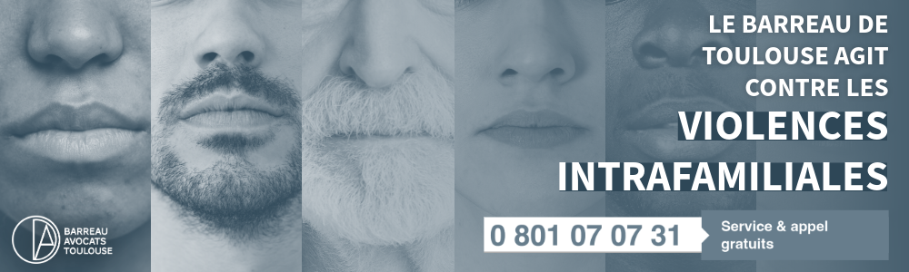 Dans la continuité de ses différents engagements en faveur de l’accès au droit de toutes et tous, et plus précisèment concernant la lutte contre les violences intrafamiliales, le Barreau de Toulouse annonce la mise en place d'un numéro vert permanent à destination des personnes victimes ou témoins de violences intrafamiliales.