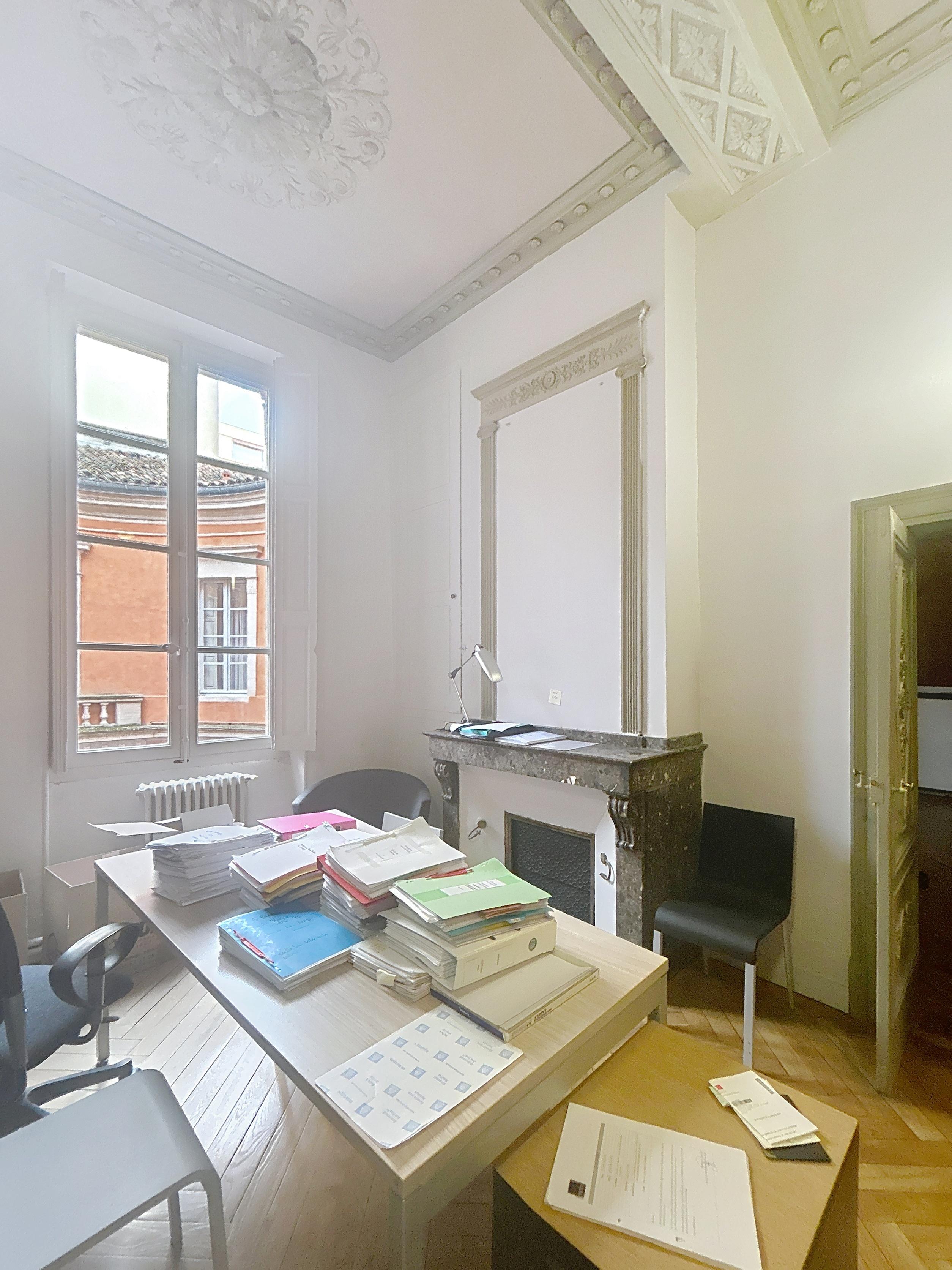 Au 2 ème étage du 16 rue Saint Antoine du T, prestigieux espace de bureaux de 184 m² de surface locative, offrant 5 bureaux et une salle de réunion, un espace cusine, 2 sanitaires, une douche. Climatisation.