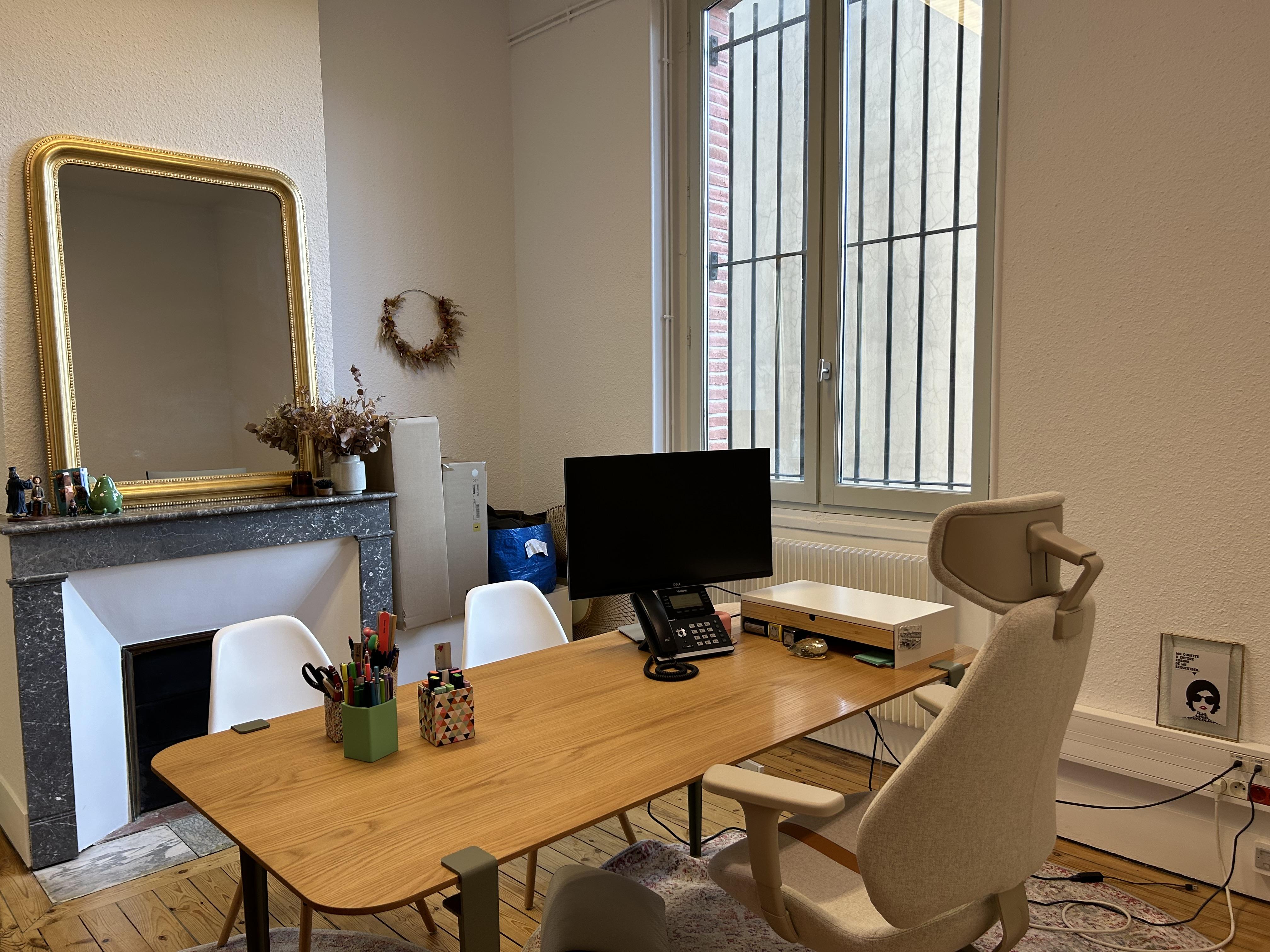 Au 1er étage avec ascenseur, le plateau est entièrement câblé et cloisonné, avec un espace d'accueil, plusieurs espaces cloisonnés proposant de beaux volumes.