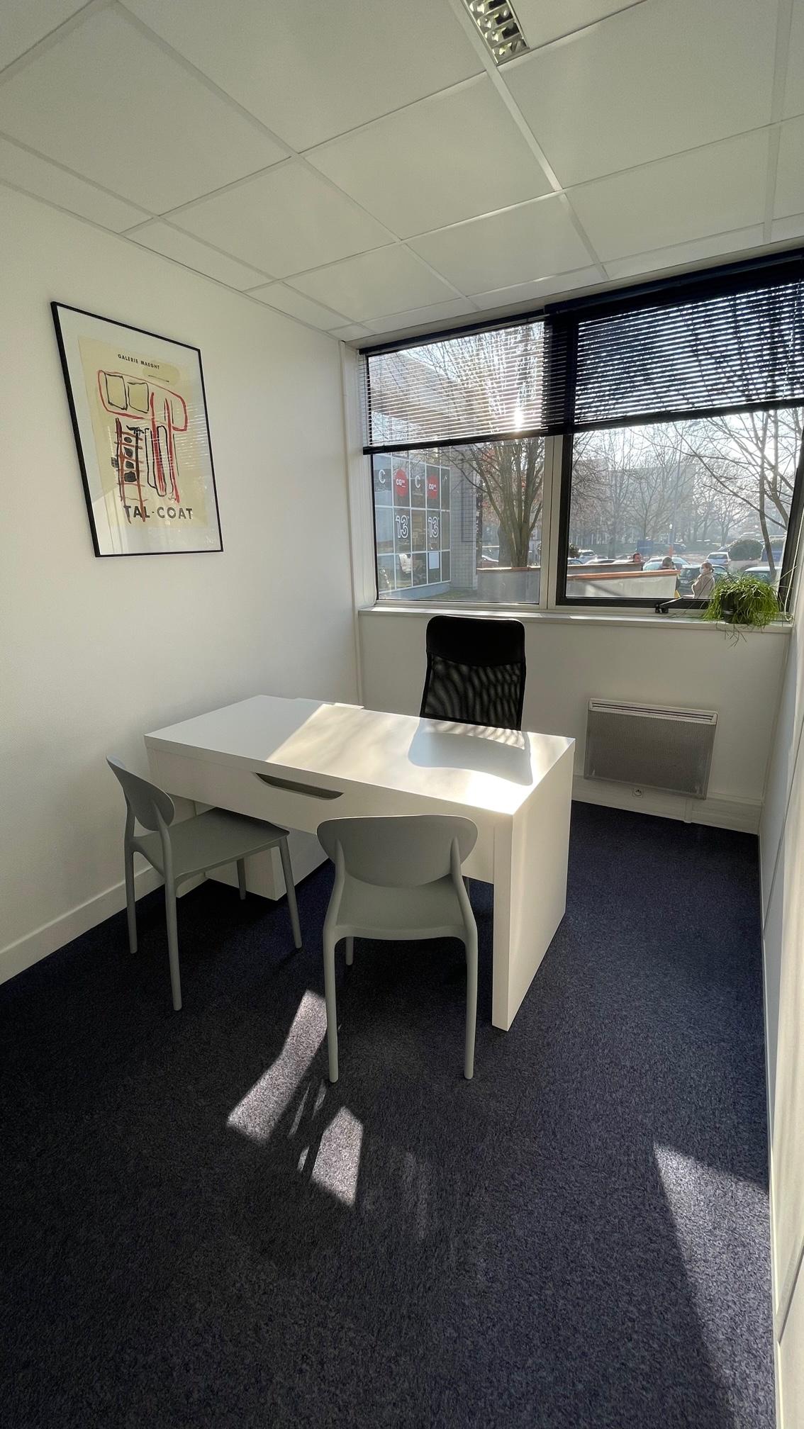 Avec 2 ou 3 collègues, possibilité de partager un bureau - sur planning, avec place de parking privative et tout équipé - connexion fibre, caisson privatif. Accès à la cuisine de notre centre.