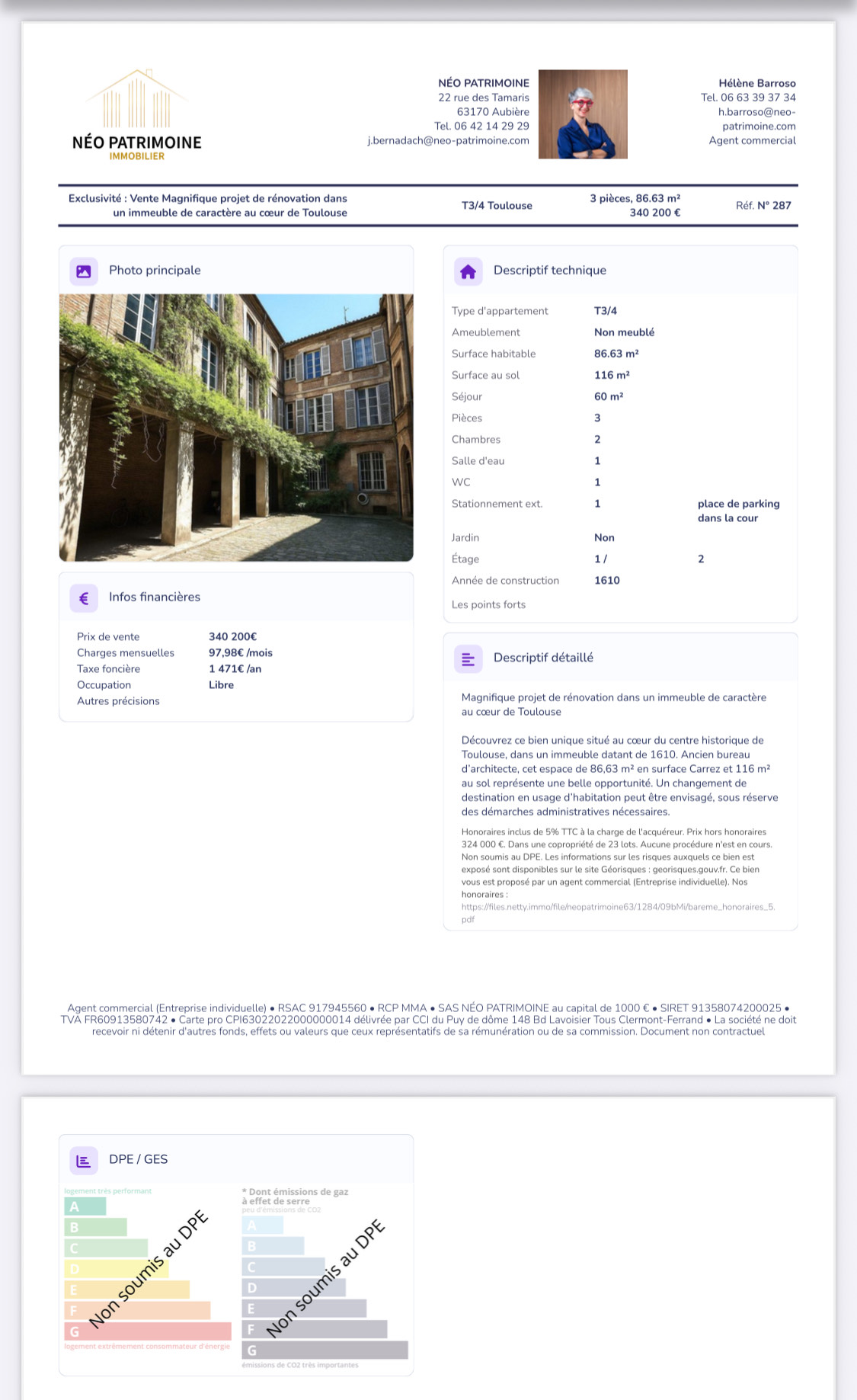 Idéal pour une profession libérale ou une activité de conseil, ce bien rare séduit par ses volumes, son cachet ancien et sa place de stationnement privative dans la cour.