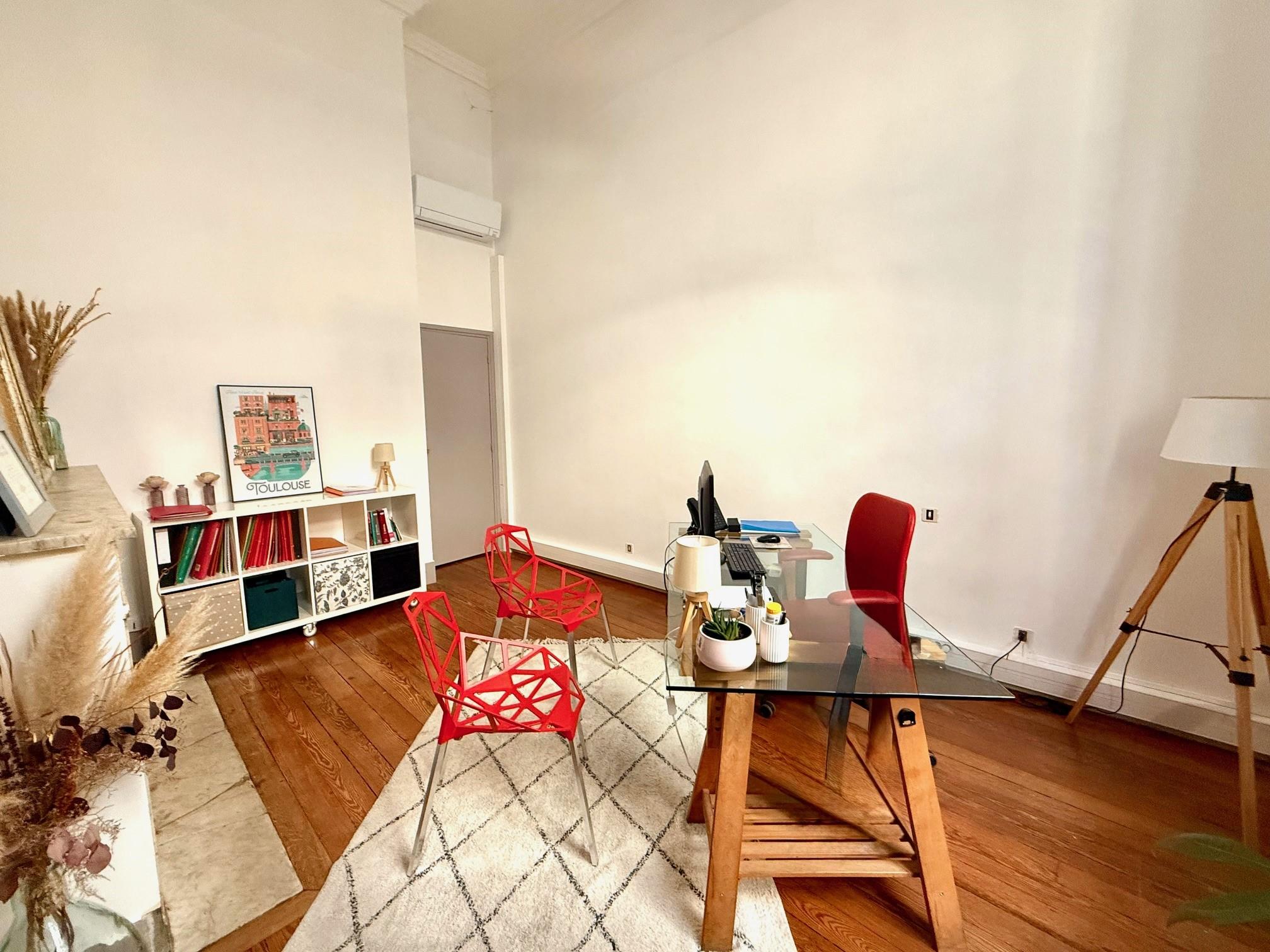 1 élégant bureau de 17 m² dans un ancien appartement de 130m² (chambre 1 sur le plan)- 14 rue Peyras – 1er étage – porte d’entrée blindée - parquets anciens, cheminée- grand placard - hauts plafonds, climatisation réversible neuve, double vitrage - calme - parties communes : salle d’attente - cuisine – salle d’eau – WC.