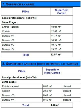 Charges courantes annuelles pour les bureaux et les deux places de parking d’environ 3150 Euros, soit environ 262 Euros/mois (chauffage/clim inclus).